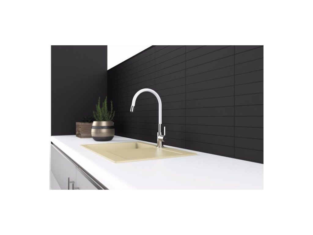 Jednoduchou výmenou ramienka si prispôsobíte farbu batérie akejkoľvek kuchynskej linke . Drezová stojanková vodovodná batéria Flexy-33 vyniká vysoko kvalitným spracovaním a spoľahlivou funkčnosťou všetkých súčastí a materiálov.