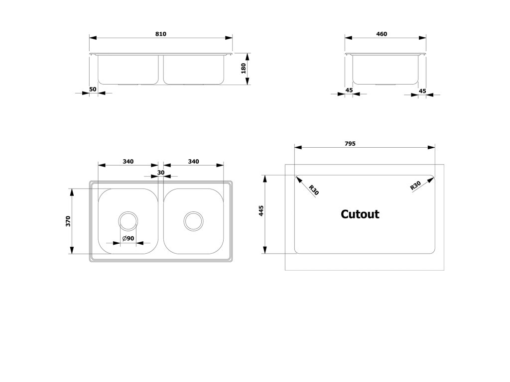 Nerezový vstavaný drez, dvojitý 81x18x46cm