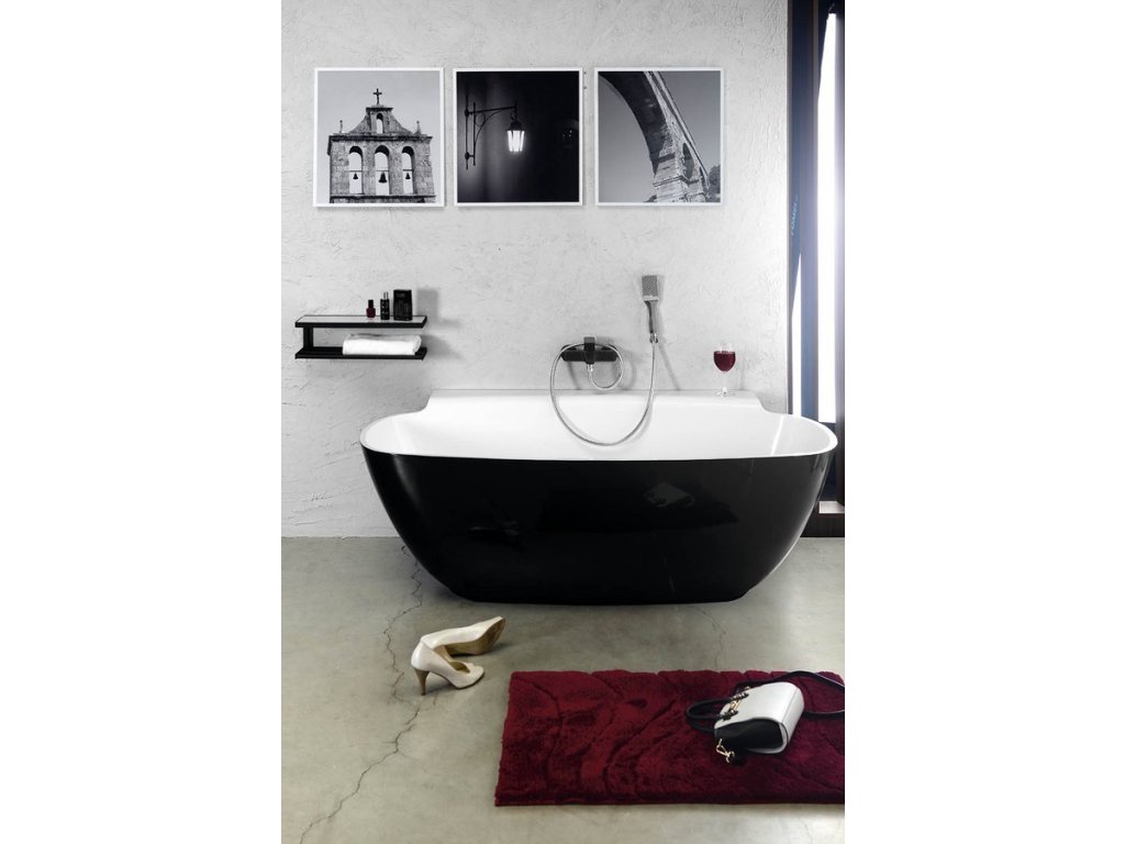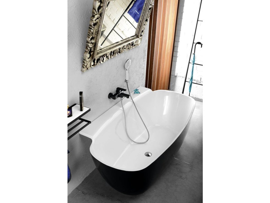 NIGRA voľne stojaca vaňa liaty mramor 158x80x45cm, čierna/biela