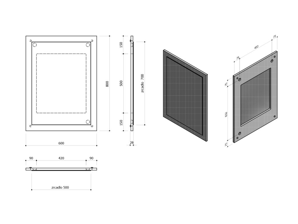 NIROX zrkadlo v ráme 60x80cm, biela lesk