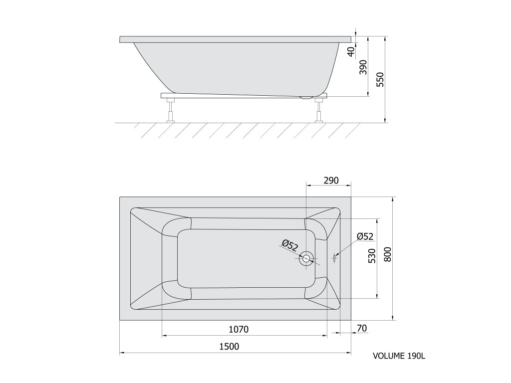 NOEMI obdĺžniková vaňa 150x80x39cm, biela mat