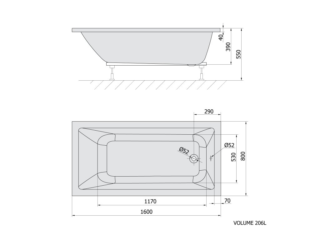 NOEMI obdĺžniková vaňa 160x80x39cm, biela mat