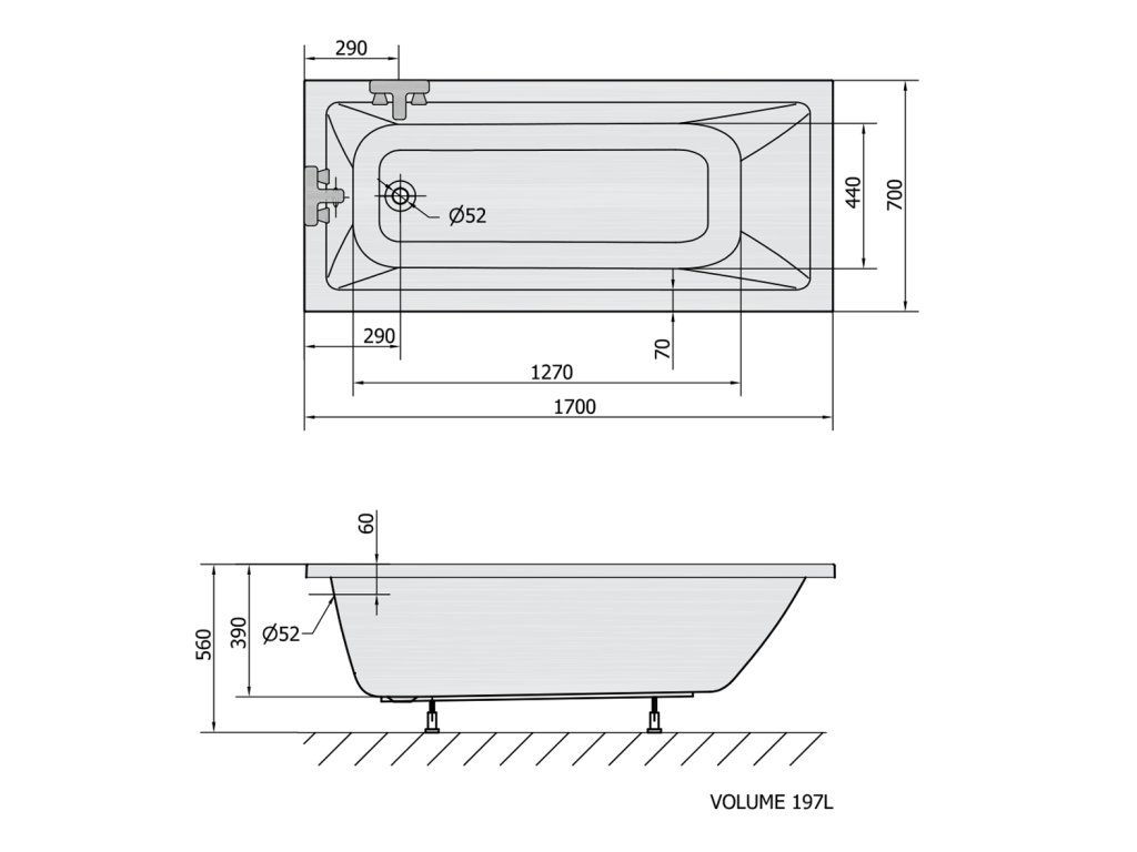 NOEMI obdĺžniková vaňa 170x70x39cm, ivory
