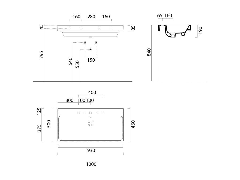 NUBES keramické umývadlo 100x50cm, brúsená spodná hrana, biela ExtraGlaze