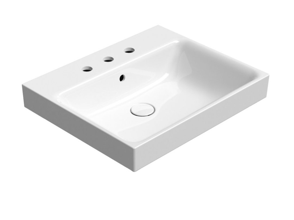 NUBES keramické umývadlo 60x50cm, brúsená spodná hrana, 3 otvory, biela ExtraGlaze