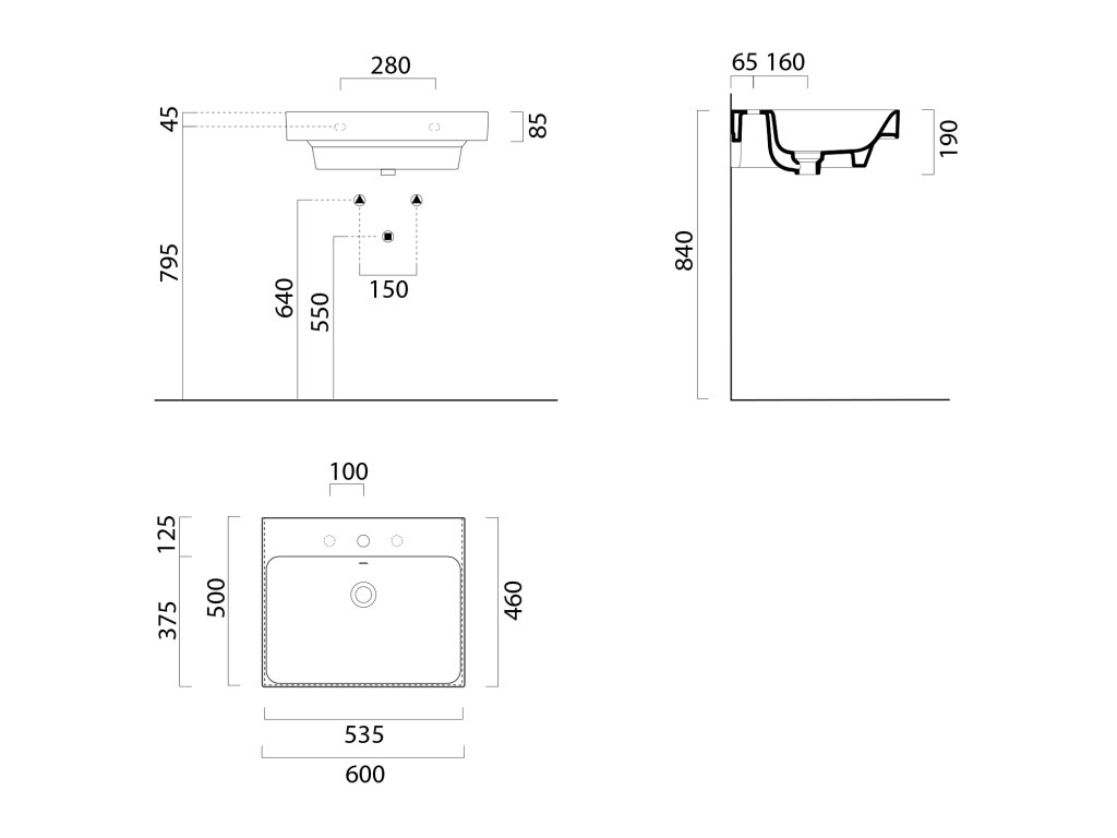 NUBES keramické umývadlo 60x50cm, brúsená spodná hrana, bez otvoru, biela mat