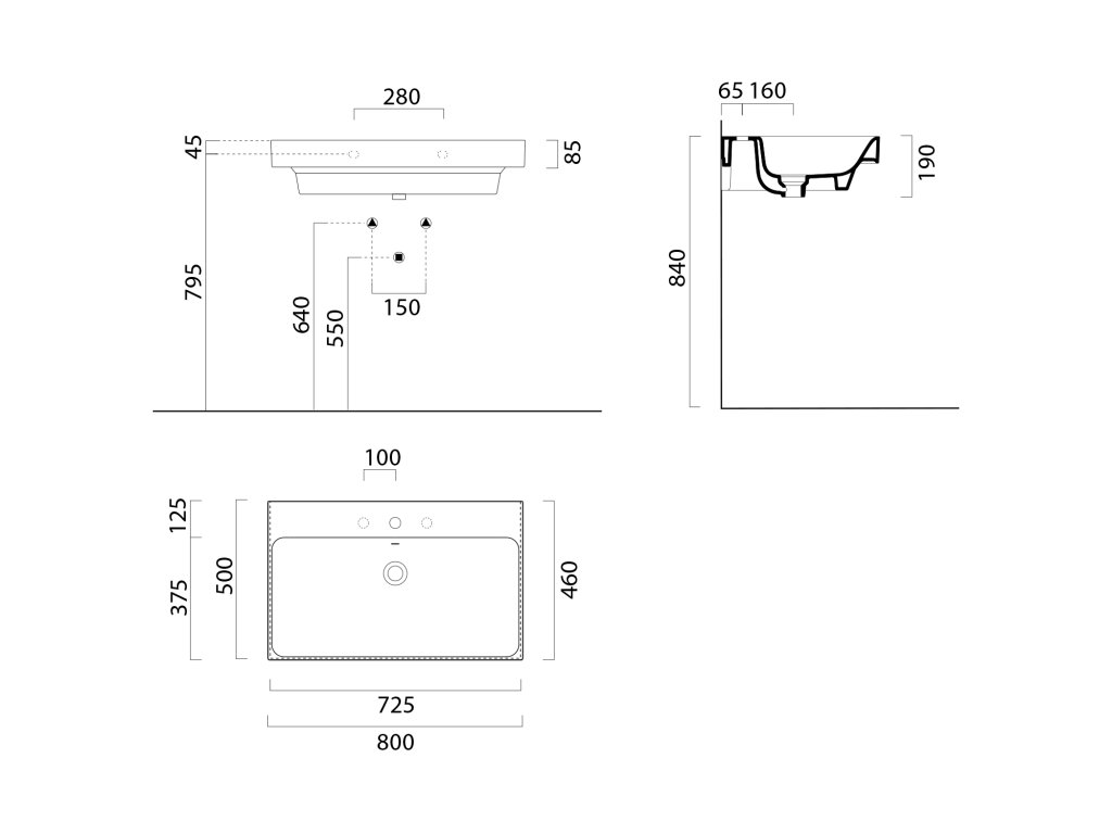 NUBES keramické umývadlo 80x50cm, brúsená spodná hrana, bez otvoru, biela ExtraGlaze