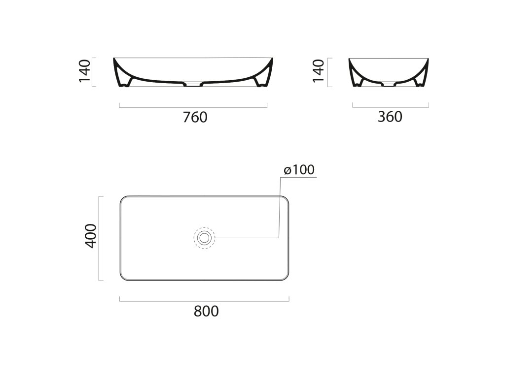 NUBES keramické umývadlo na dosku 80x40cm, ghiaccio mat