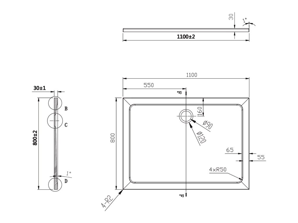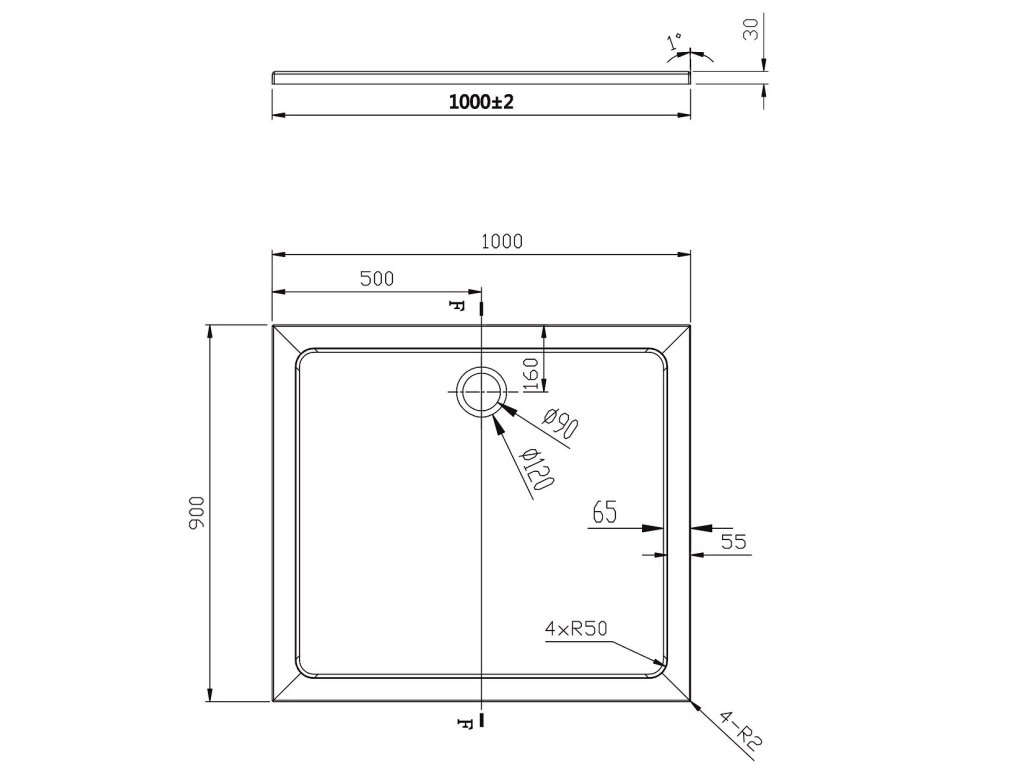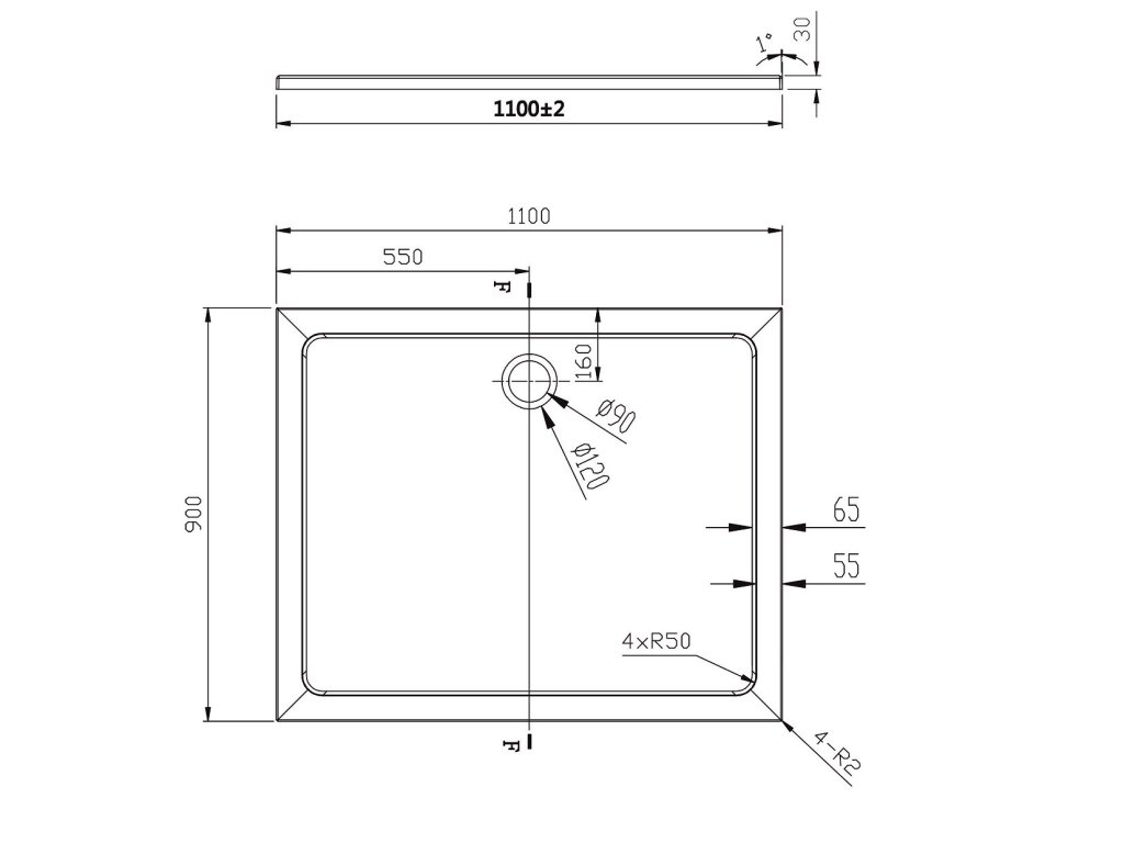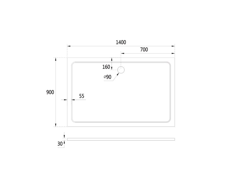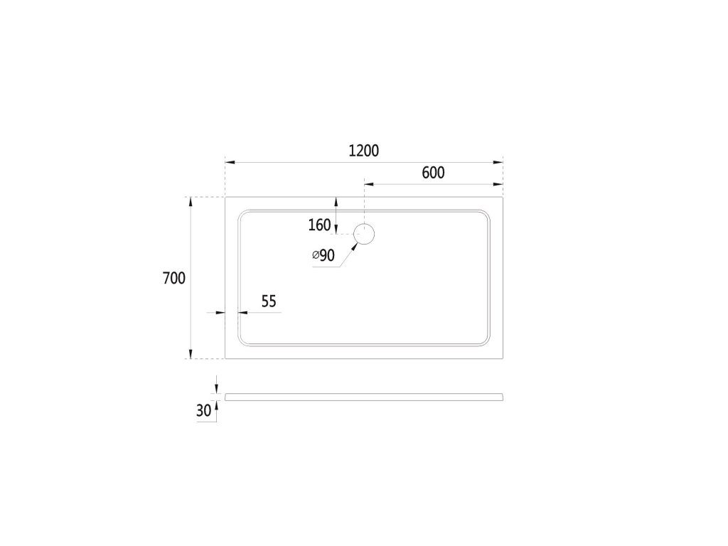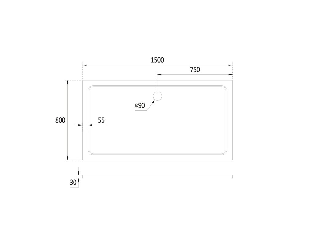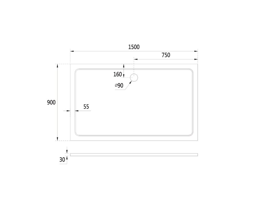 - Priemer otvoru pre sifón - 90 mm