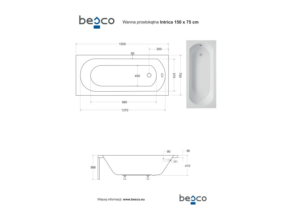 Obdĺžniková vaňa INTRICA vyniká vysoko kvalitným spracovaním a spoľahlivou funkčnosťou všetkých súčastí a materiálov.