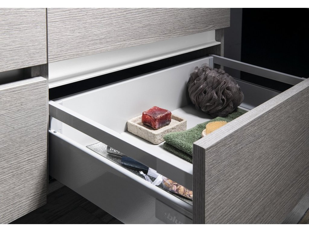 Nábytok je vybavený pojazdy zásuviek s pomalým dojazdom a systémom automatického dovretí zásuviek. Už žiadne hlučné zatváranie.
