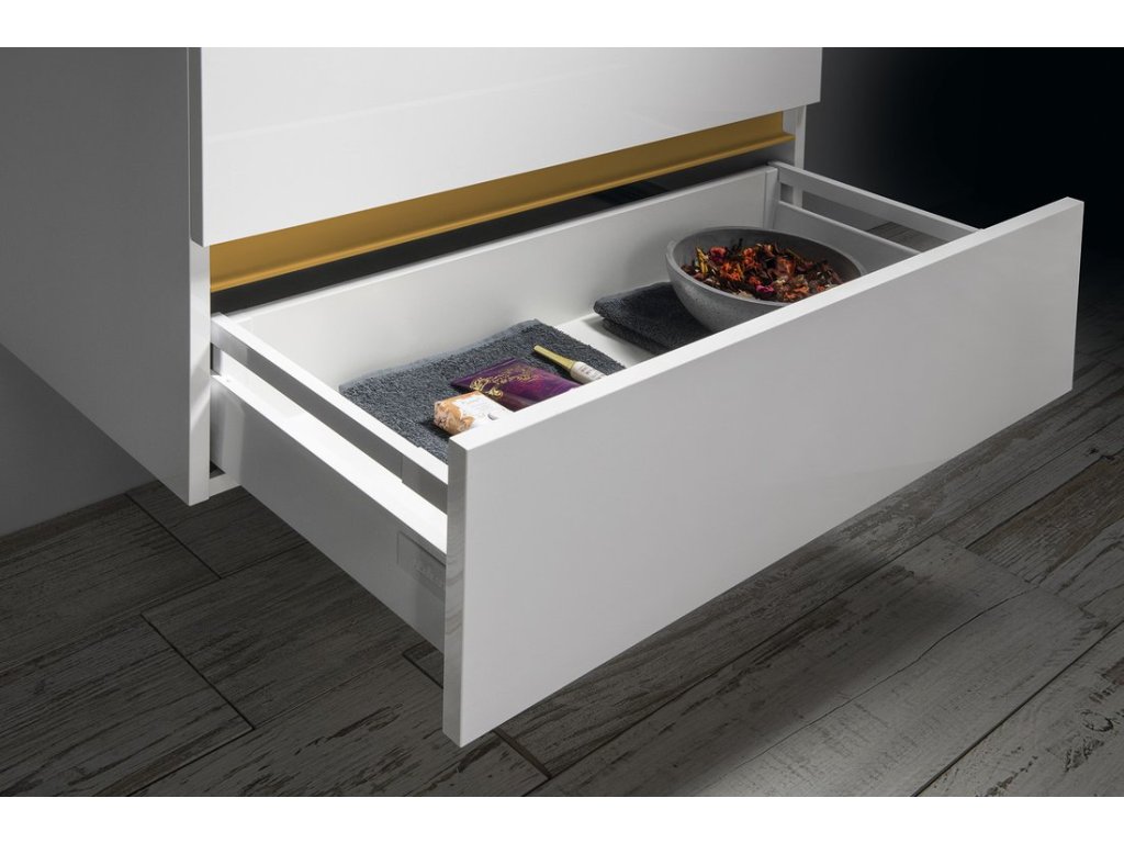 Nábytok je vybavený pojazdy zásuviek s pomalým dojazdom a systémom automatického dovretí zásuviek. Už žiadne hlučné zatváranie.
