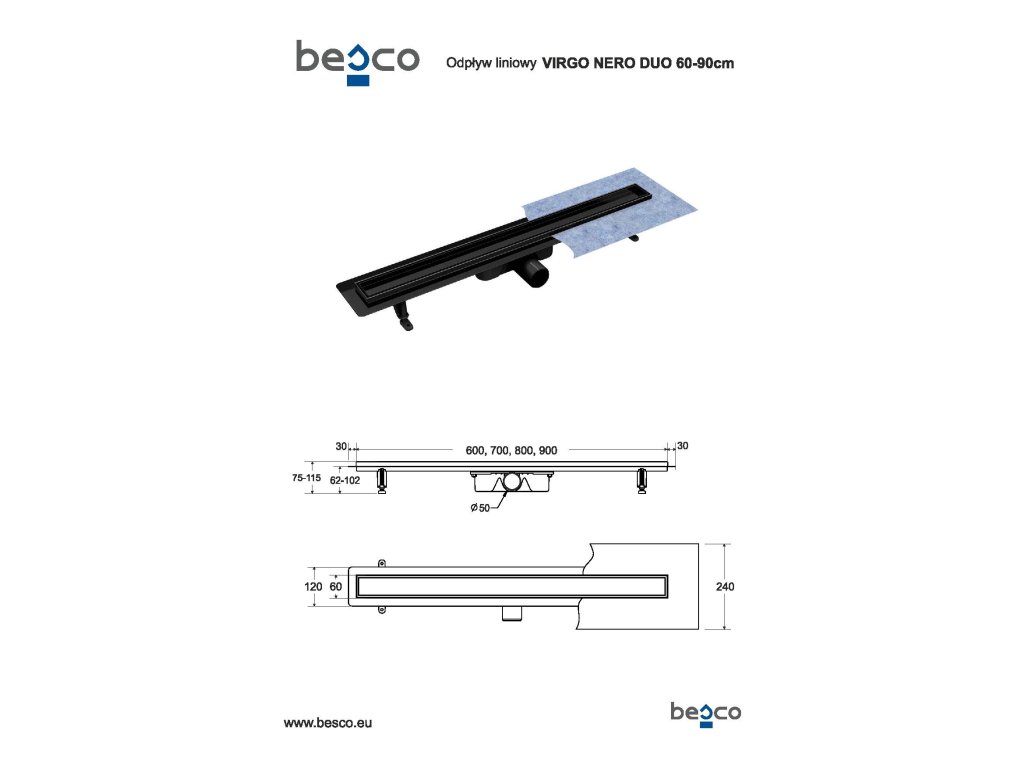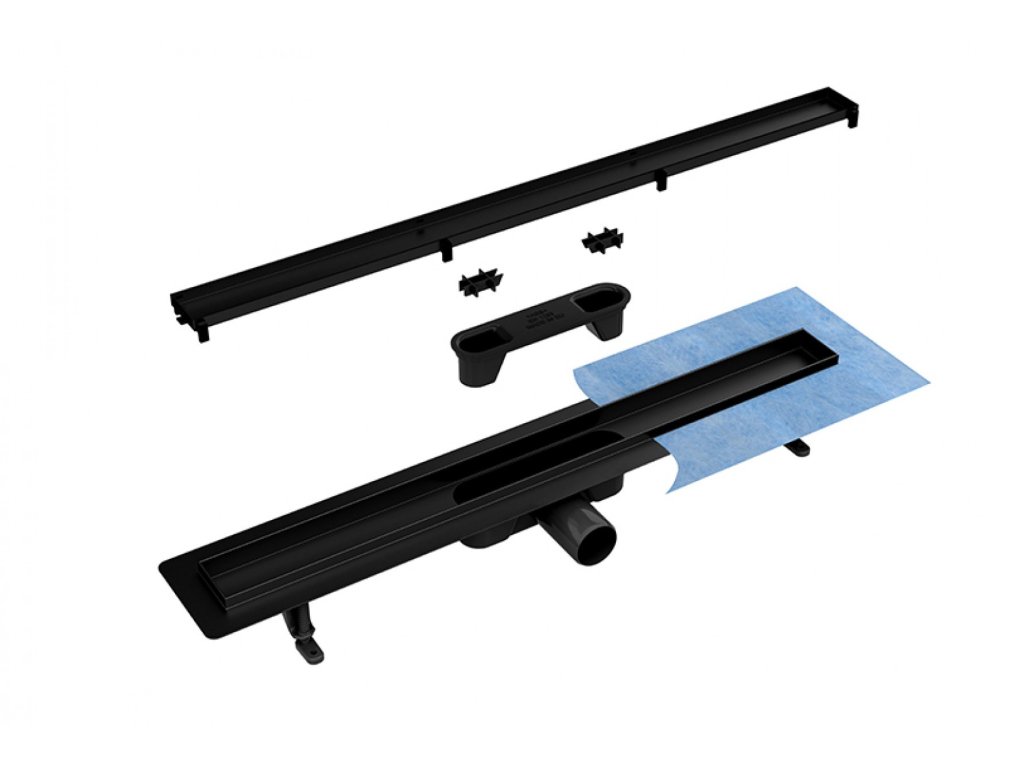 Kvalitne a moderne spracovaný odtokový žľab. Telo žľabu aj vlastný rast je vyrobený z veľmi kvalitnej nereze a sú oba s povrchovou úpravou v čiernej farbe . Rošt je možné použiť buď na vloženie dlažby , alebo ako pohľadový (čierna farba). Tento žľab obohatí každú kúpeľňu o nádych luxusu. Sada obsahuje: žľab so sifónom a nožičkami, rošt a hydroizolačnú pásku.