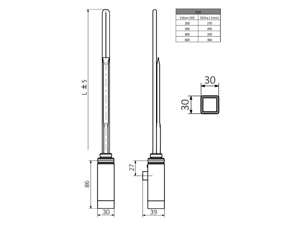 ONE vykurovacia tyč s termostatom, 300 W, chróm
