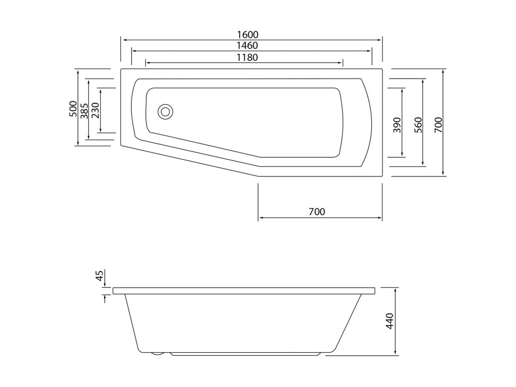 OPAVA vaňa 160x70x44cm, pravá, biela