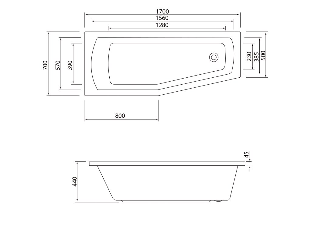 OPAVA vaňa 170x70x44cm, ľavá, biela