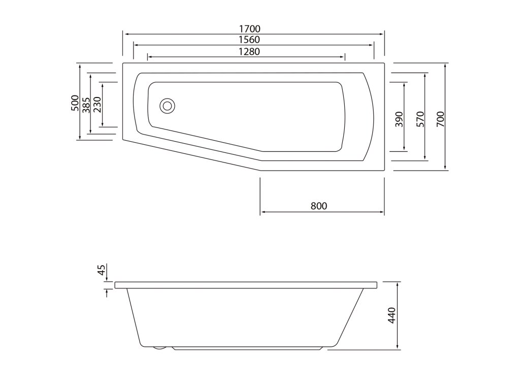 OPAVA vaňa 170x70x44cm, pravá, biela