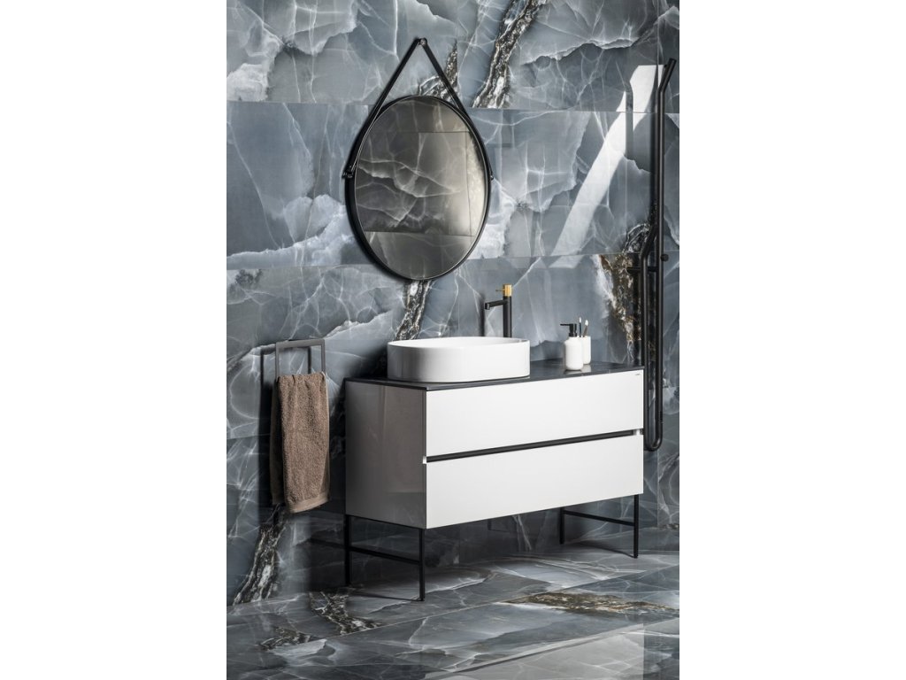 ORBITER zrkadlo guľaté s koženým popruhom, ø 50cm, čierna mat