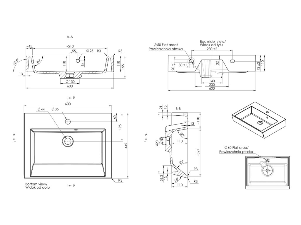 ORINOKO umývadlo 60x45cm, liaty mramor, biela