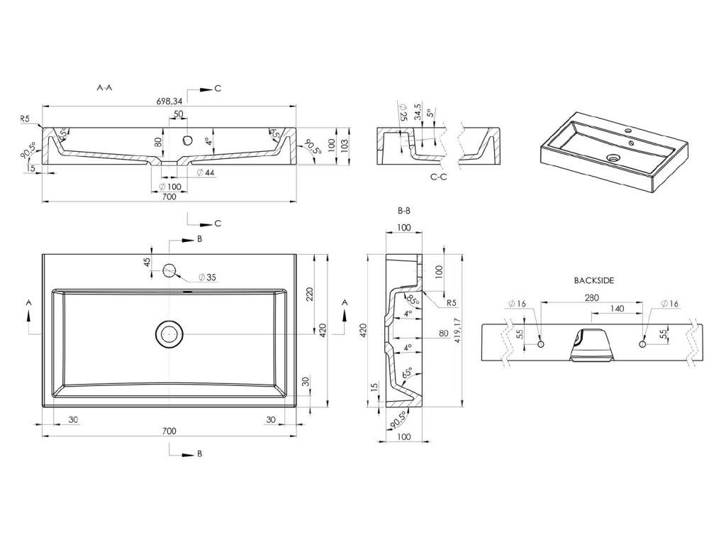 ORINOKO umývadlo 70x42cm, liaty mramor, biela
