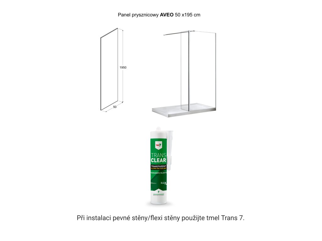 Pri inštalácii pevnej steny/flexi steny použite tmel Trans 7.