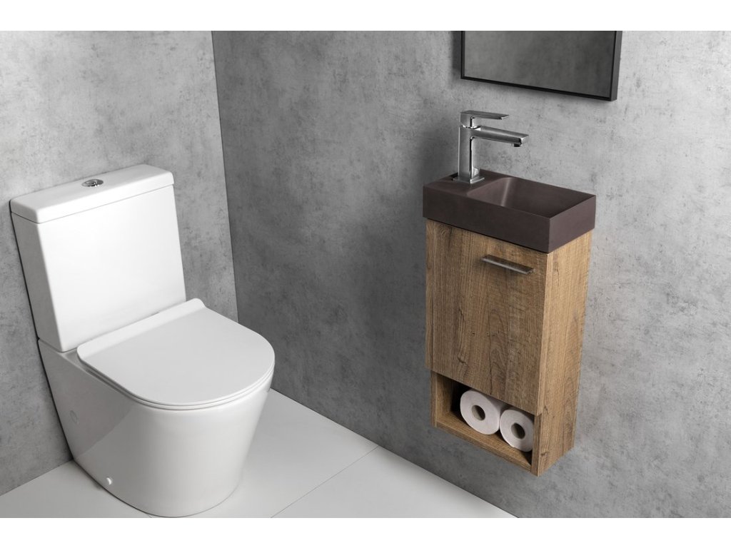 PICCOLINO betónové umývadlo 30,8x17cm, batéria vľavo, tmavo hnedá mat
