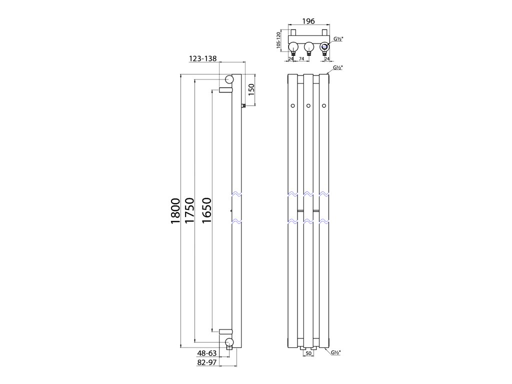 PILON vykurovacie teleso 196x1800mm, so 3 háčikmi, čierna mat