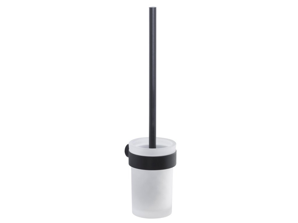 PIRENEI WC kefa závesna, mliečne sklo, chróm, čierny mat