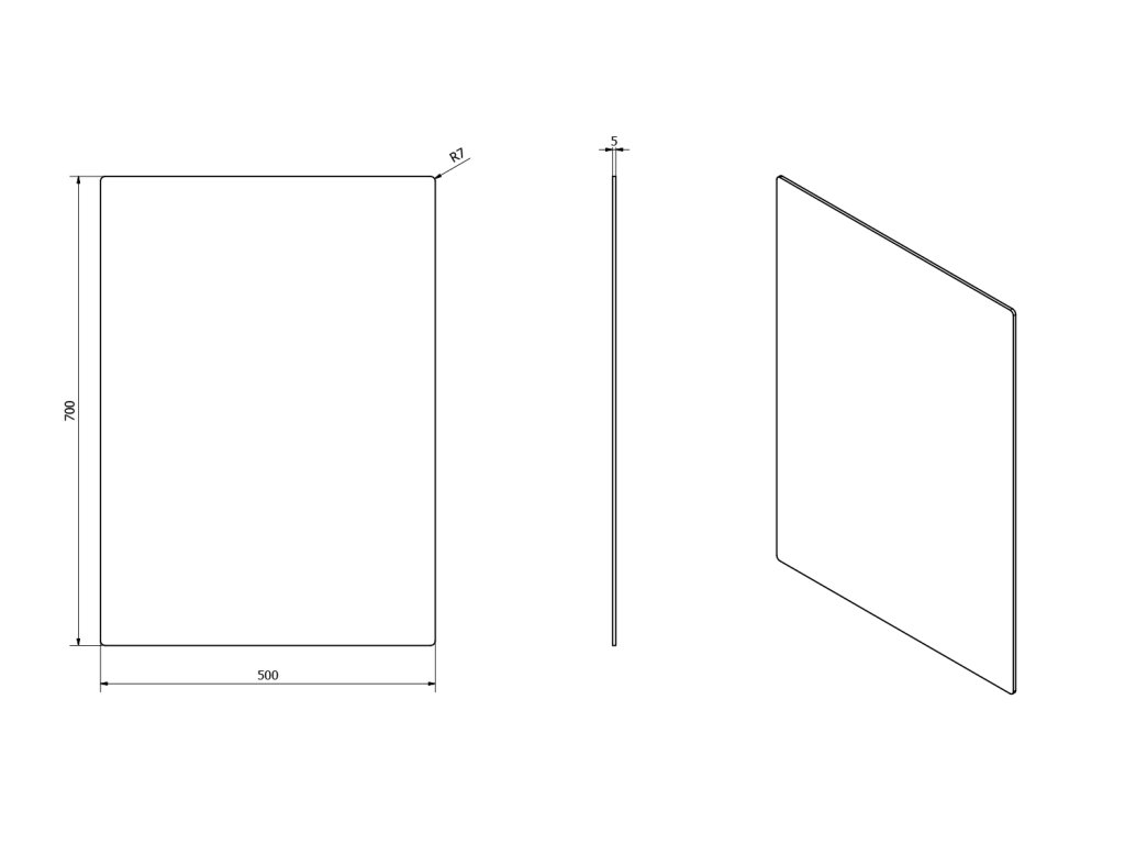 PLAIN zrkadlo s brúseným okrajom 50x70cm, zaoblené rohy, CU free