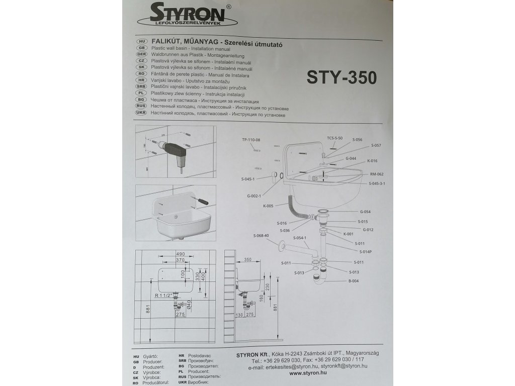 Plastová nástenná výlevka vrátane sifónu STY 350 nájde svoje uplatnenie ako v domoch tak aj v hoteli, penzióne, polyfunkčných domoch, kancelárskych komplexov a všade tam, kde sú väčšie nároky na upratovanie.