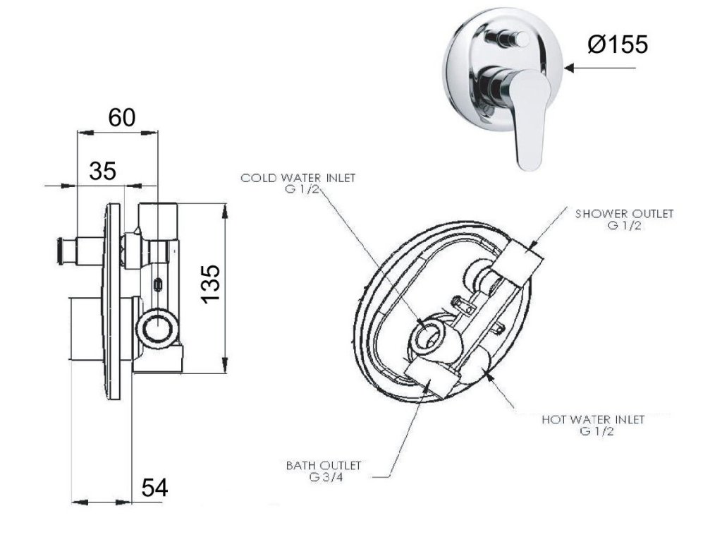 - Sprchová či vaňová batéria podomietková, bez príslušenstva, s prepínačom