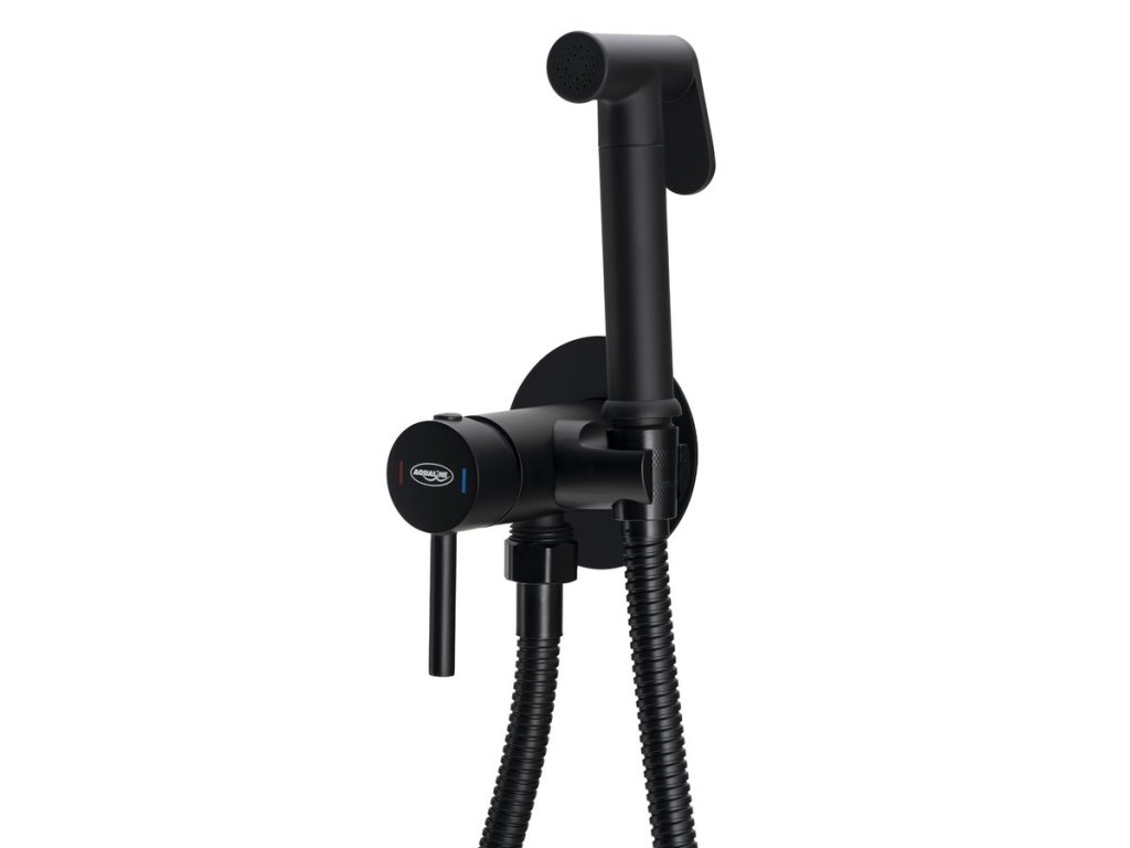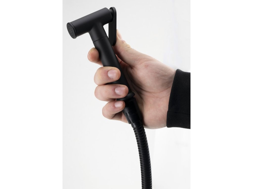 Podomietková bidetová batéria so Stop sprškou, hadica 1,2m, guľatá, čierna mat