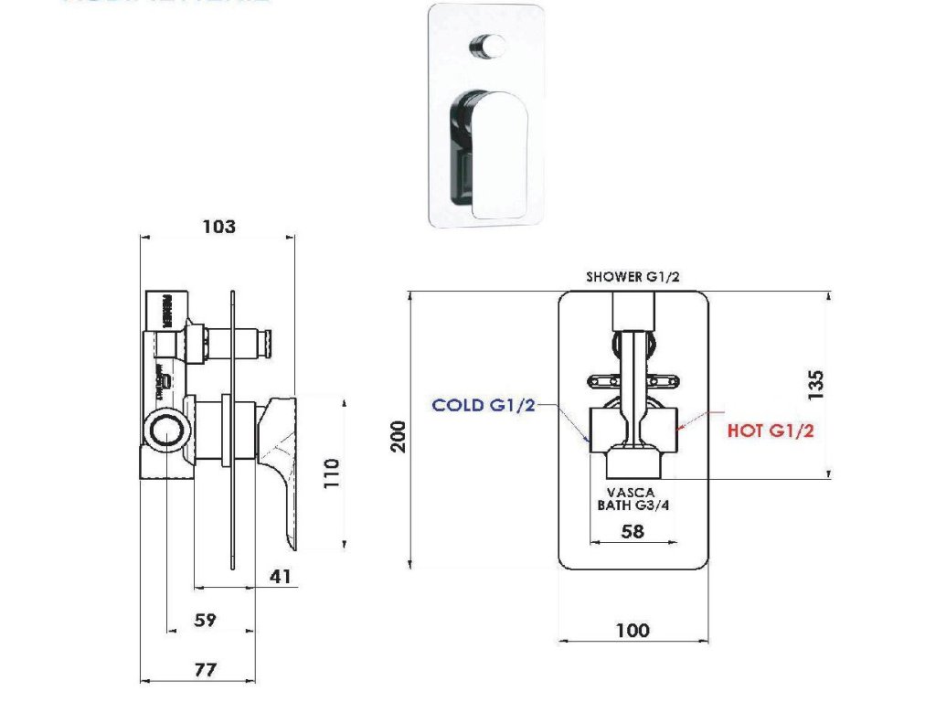 - Sprchová batéria podomietková, bez príslušenstva, s prepínačom