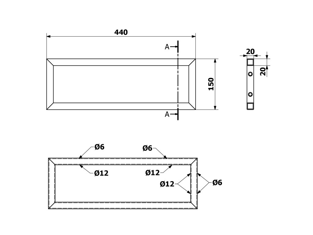 Podperná konzola 440x150x20mm, lakovaná oceľ, čierna matná