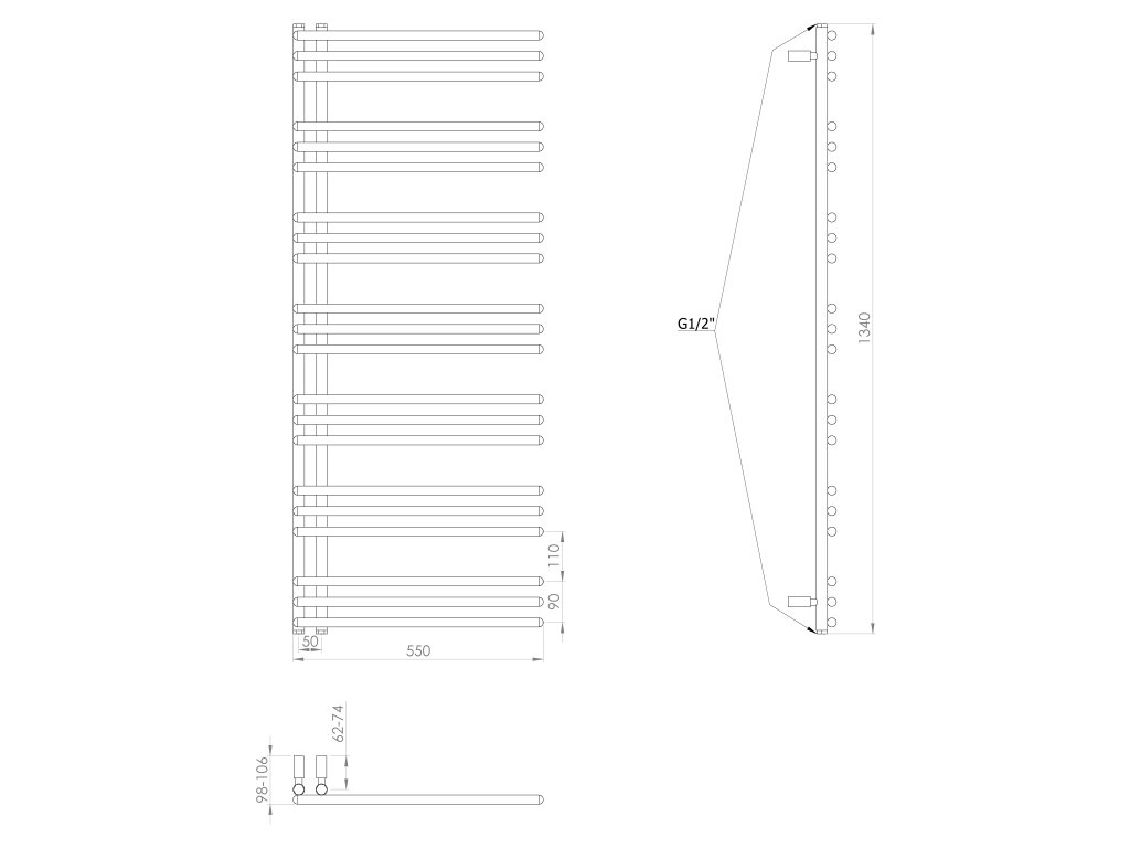 POSEIDON vykurovacie teleso 550x1340mm, biela