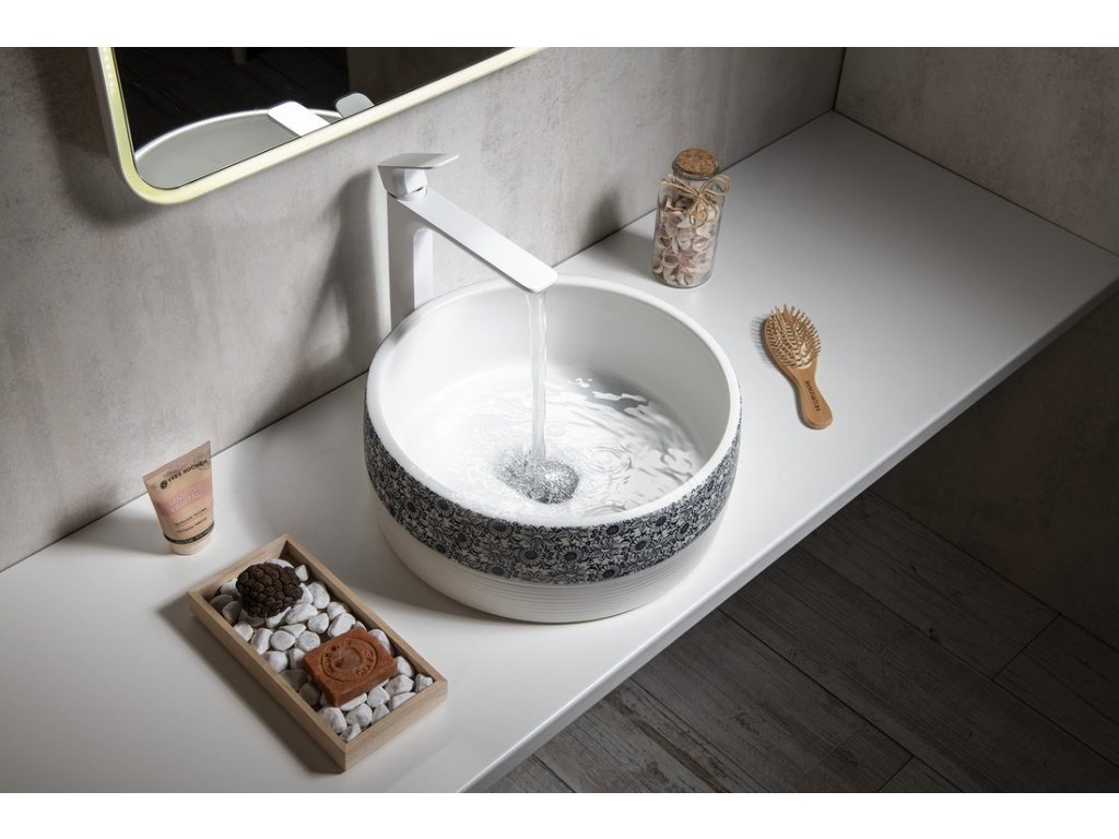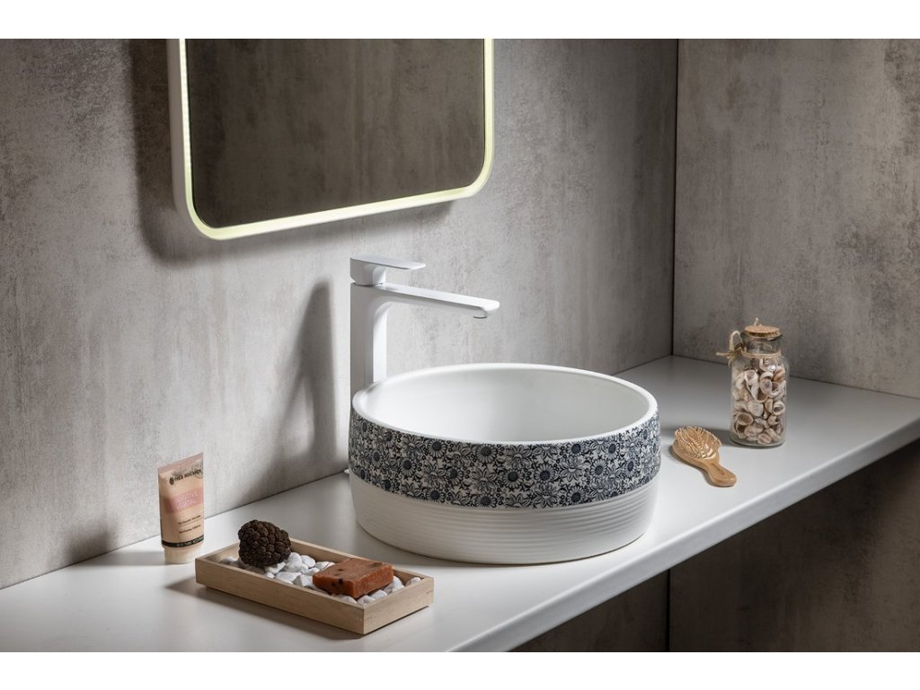 PRIORI keramické umývadlo na dosku Ø 41 cm, bielá s modrým vzorom