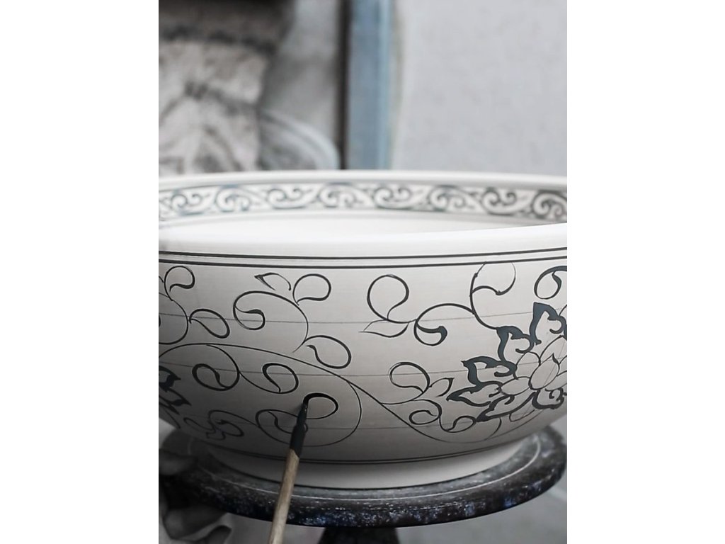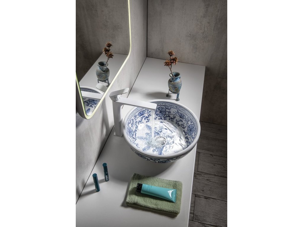 PRIORI keramické umývadlo na dosku Ø 41 cm, bielá s modrým vzorom