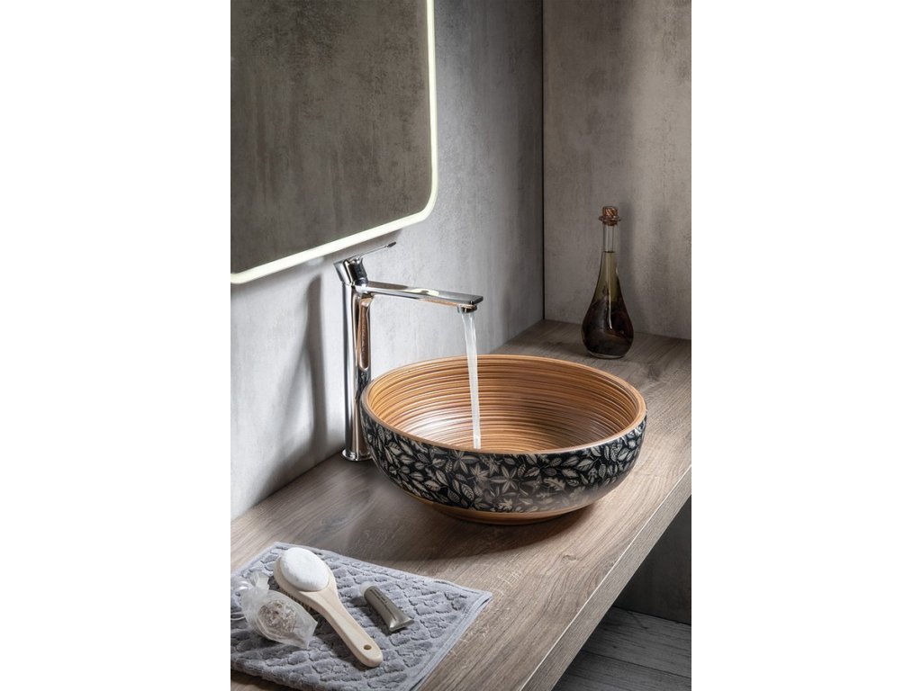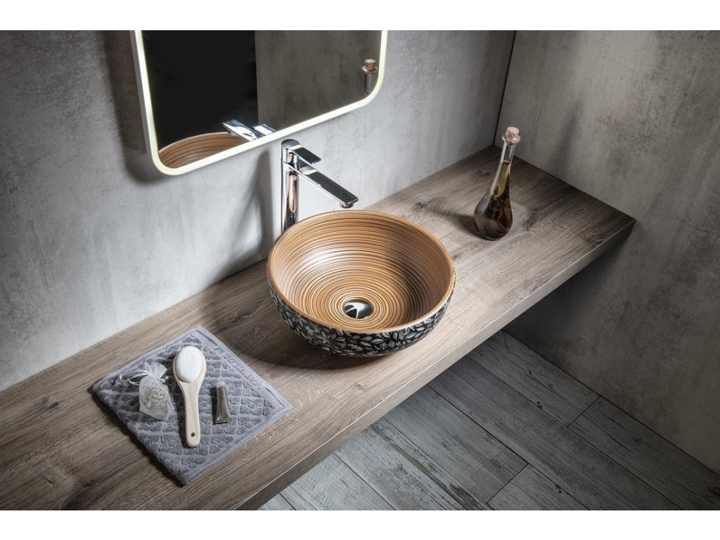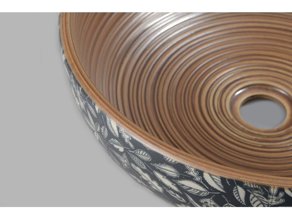 PRIORI keramické umývadlo na dosku Ø 41 cm, hnedá s modrým vzorom