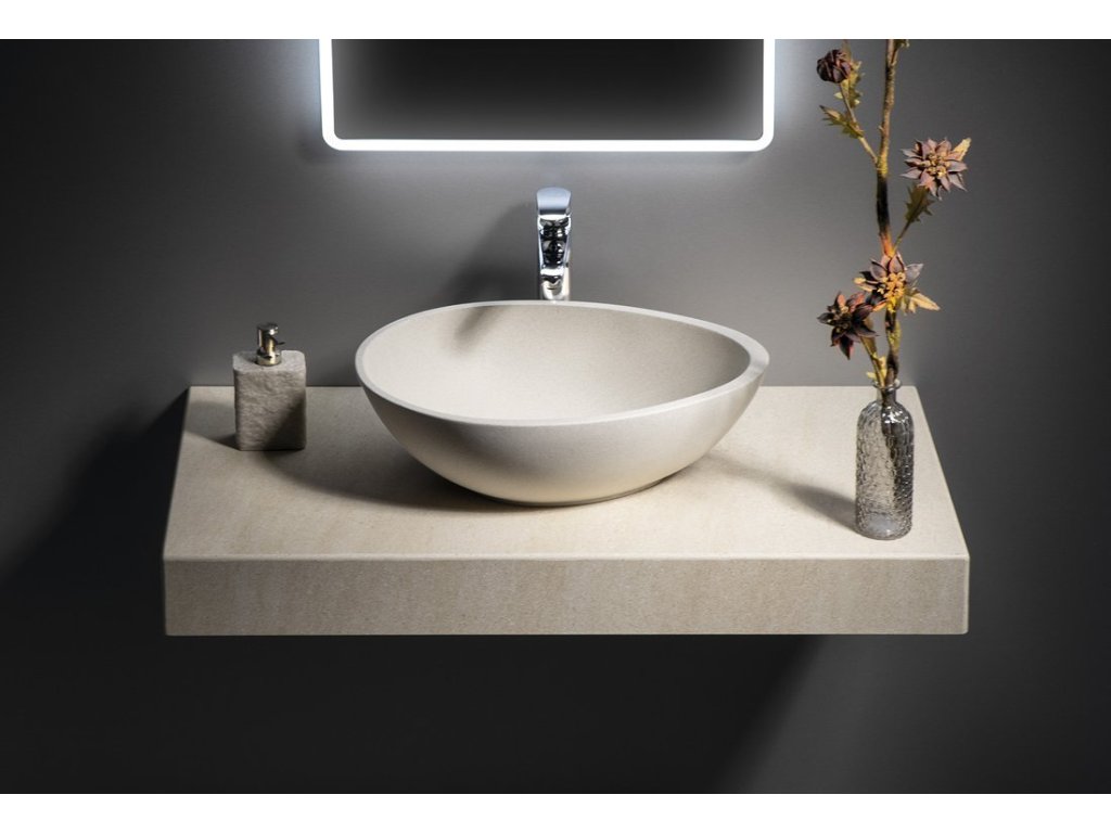 PUNC betónové umývadlo na dosku vrátane výpuste, 53x39cm, biely pieskovec