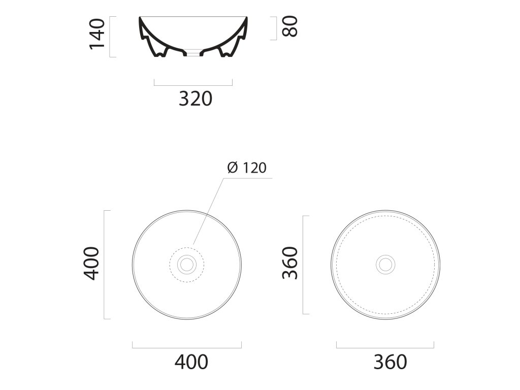 PURA keramické umývadlo na dosku, piemer 40cm, creta mat