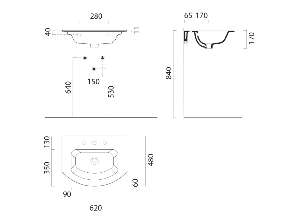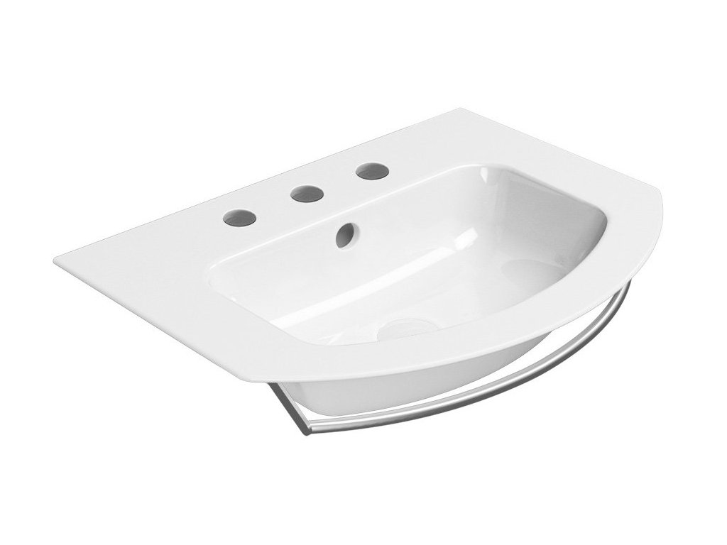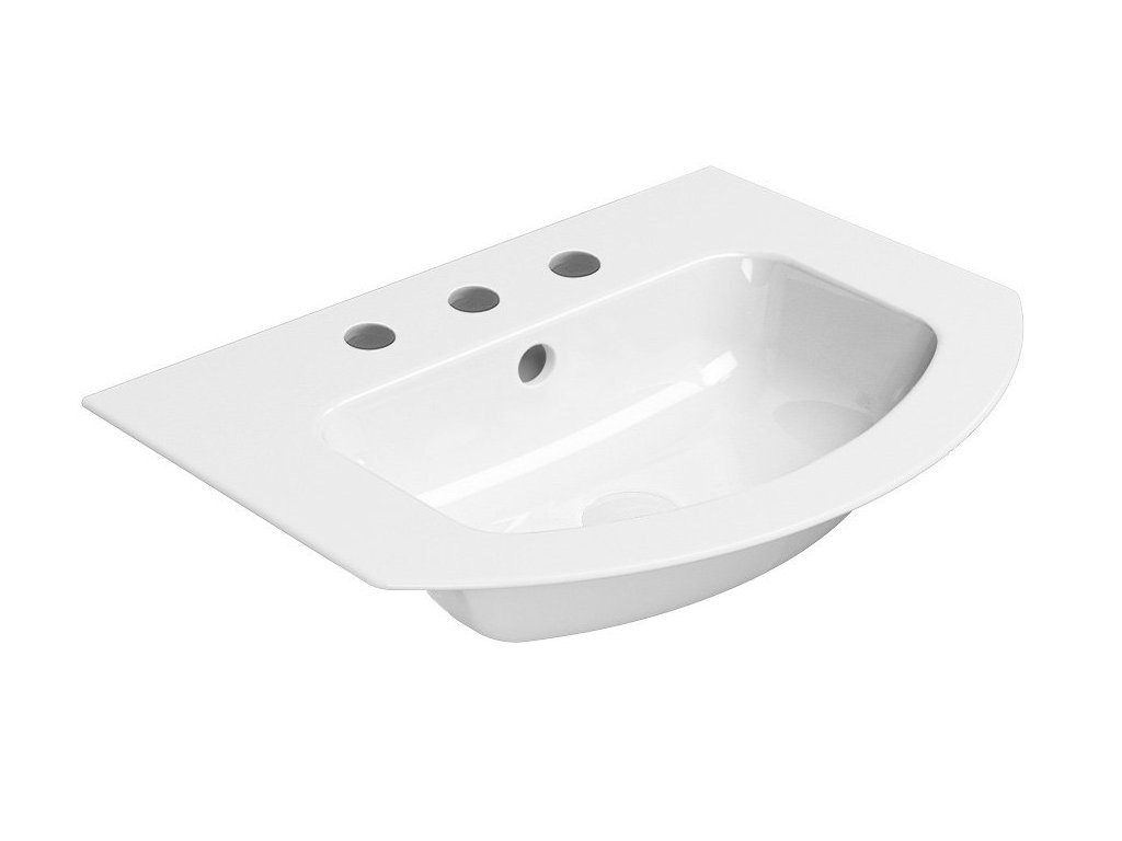 PURA keramické umývadlo Slim oblé 62x48cm, brúsená spodná hrana, 3 otvory, biela ExtraGlaze