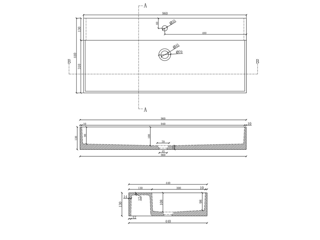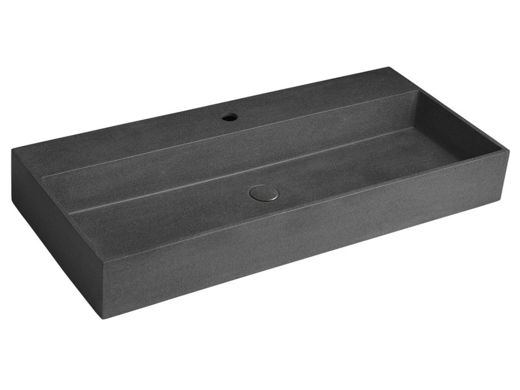 QUADRADO betónové umývadlo na dosku vrátane výpuste, 96x44cm, čierny granit