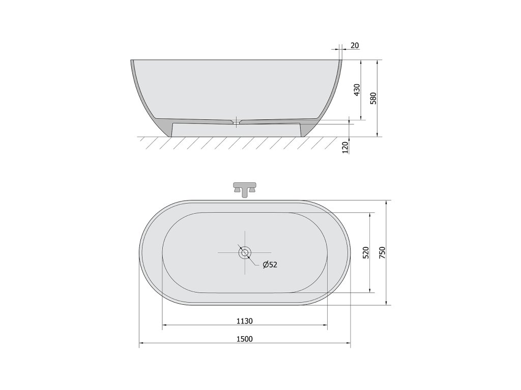 REDUTA voľne stojaca vaňa liaty mramor 150x75x58cm, antracit mat