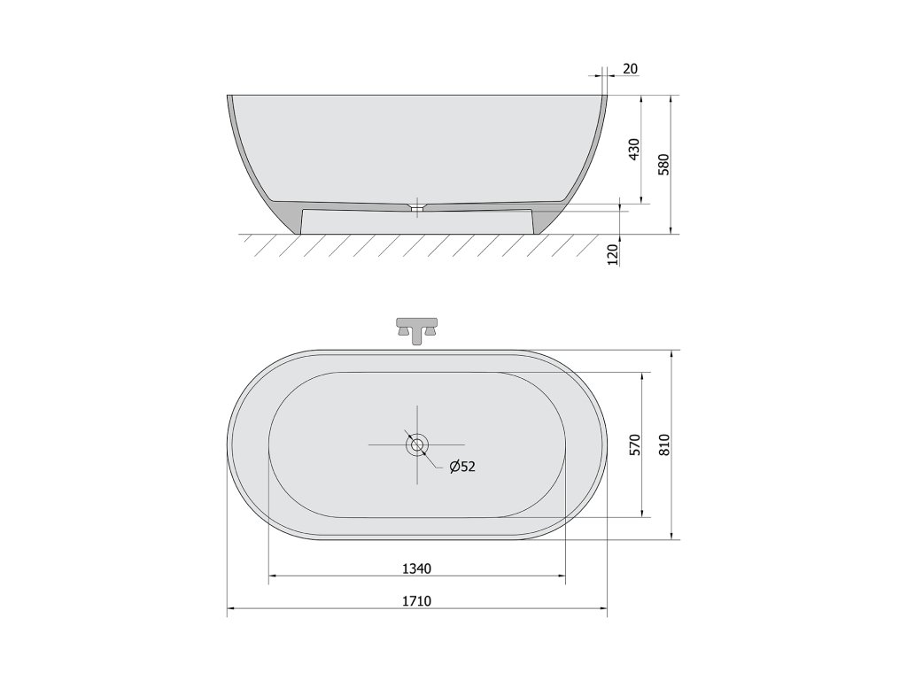 REDUTA voľne stojaca vaňa liaty mramor 171x81x58cm, béžová mat