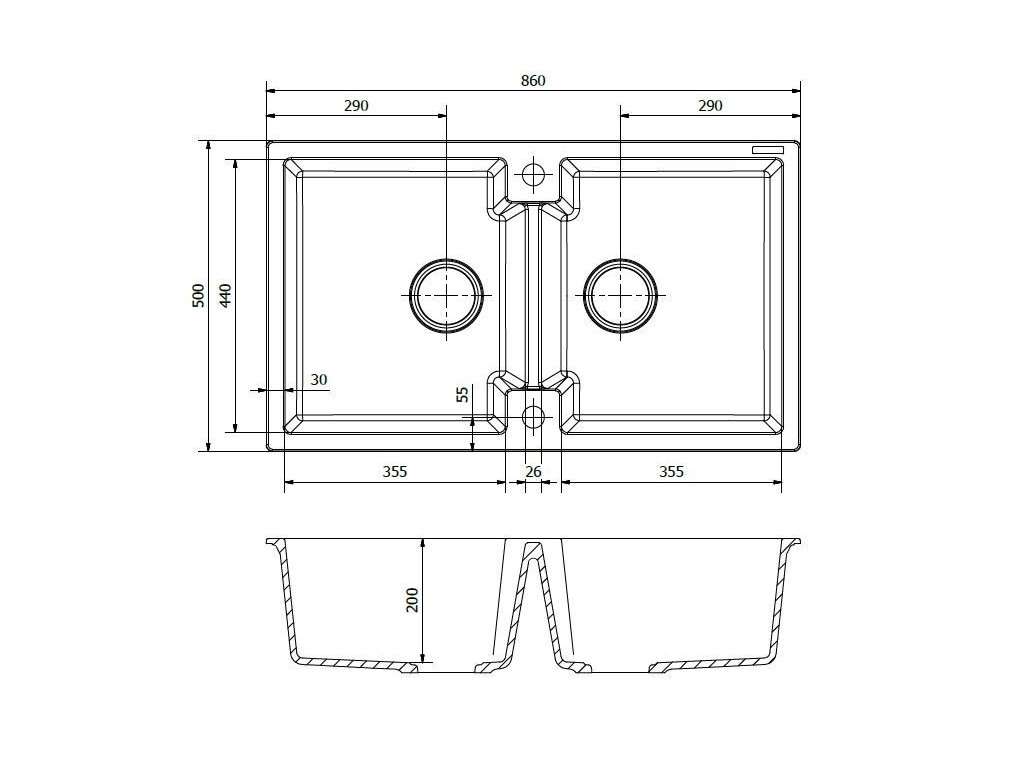 Granitový dvojdrez značky Reginox Amsterdam 860.2 disponuje dvoma vaničkami rovnakých rozmerov.
