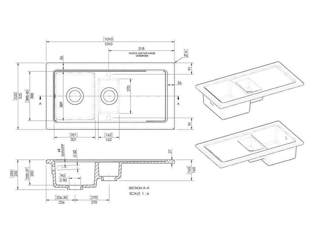 Radi by sme Vás informovali, že sa jedná o keramický drez, ktorý je vyrábaný tradičným spôsobom - odlievaním do foriem a následným vysokoteplotným výpalom v peci pri teplotách okolo 1200 °C. V priebehu tohto procesu môže dochádzať k drobným zmenám v štruktúre materiálu, najmä na miestach, ktoré nie sú pohľadové, teda na spodnej časti drezu, ktorá sa pri bežnom používaní nijako nevystavuje pohľadu ani neprichádza do kontaktu s vodou či riadom.