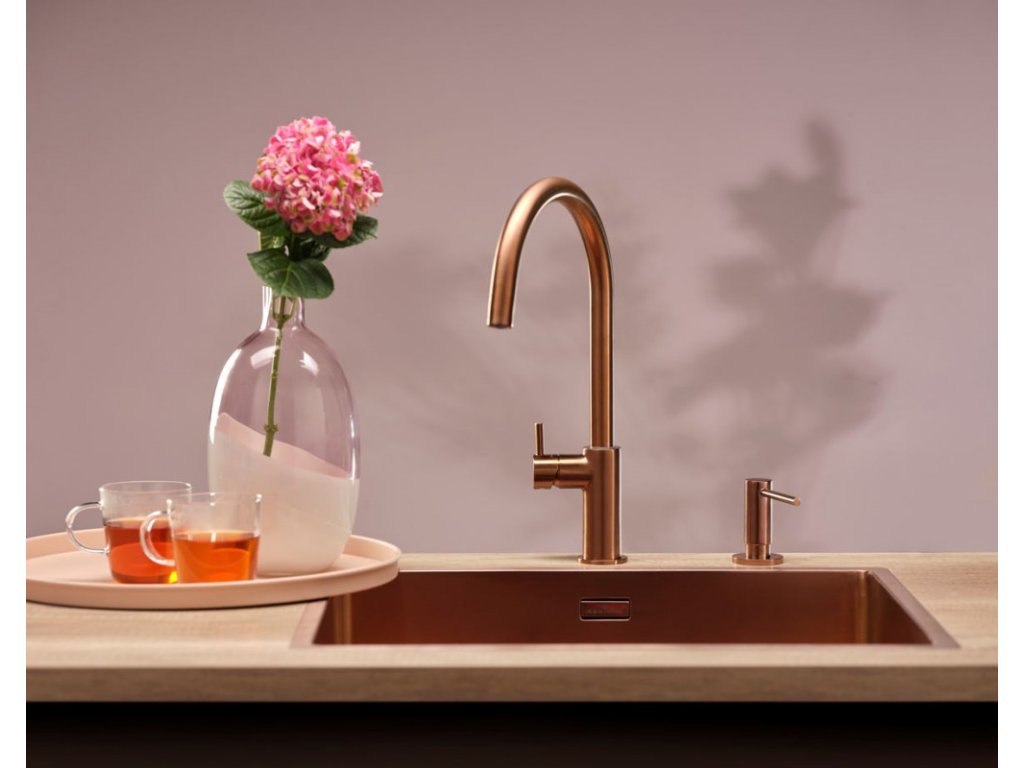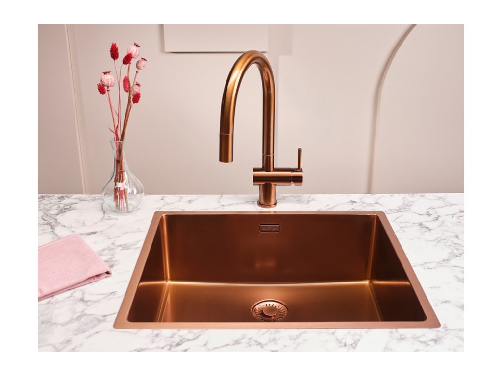 Kuchynská batéria Cano Copper (R30493) , kartáčovaný nikel-meď. Táto kuchynská batéria dopĺňa tzv. rad štýlovej mosadze, aby dokonale ladila s drezom. Ideálna kombinácia štýlu, kvality a výkonu.