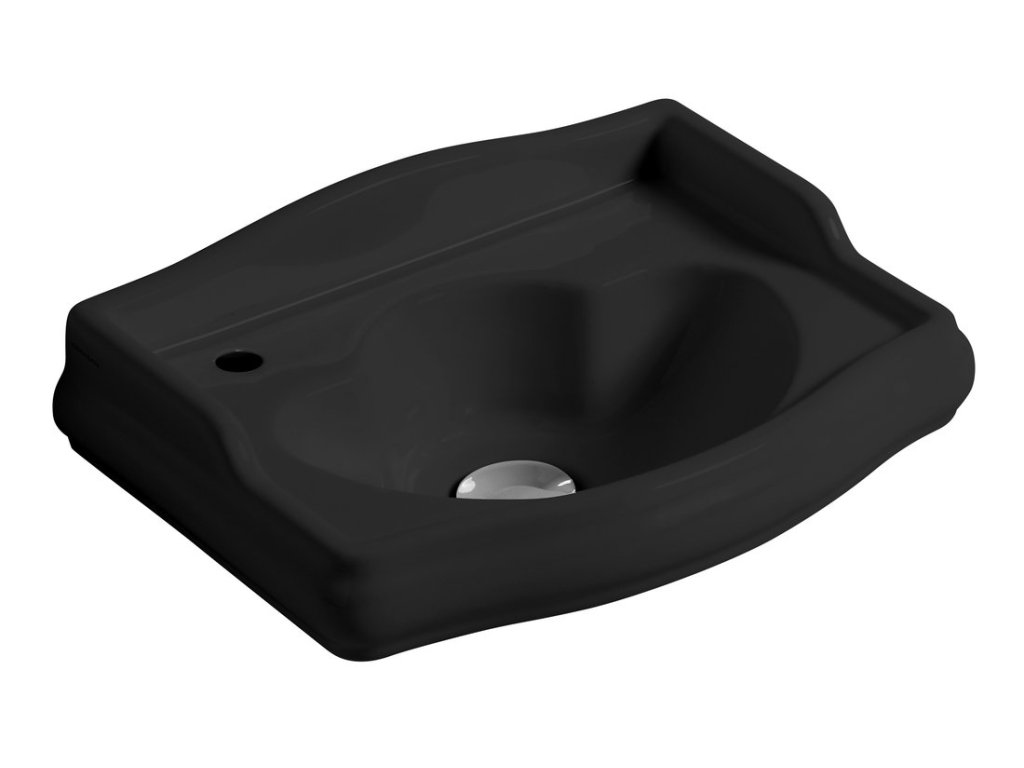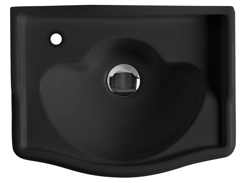 RETRO keramické umývadlo 41x30cm, otvor pre batériu vľavo, bez prepadu, čierna mat