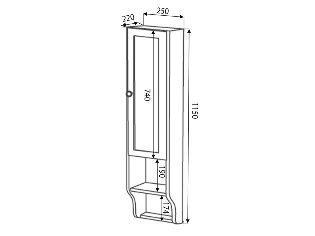 RETRO skrinka k zrcadlu 25x115x20cm, starobiela, pravá