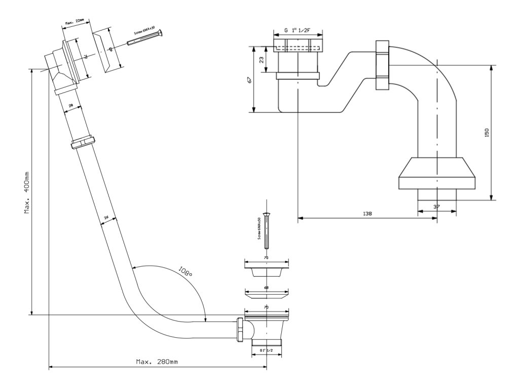 RETRO vaňová súprava pre vonkajšiu inštaláciu, retiazka, vr. sifónu, chróm